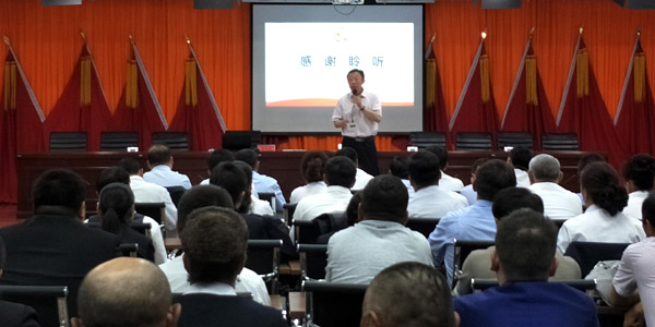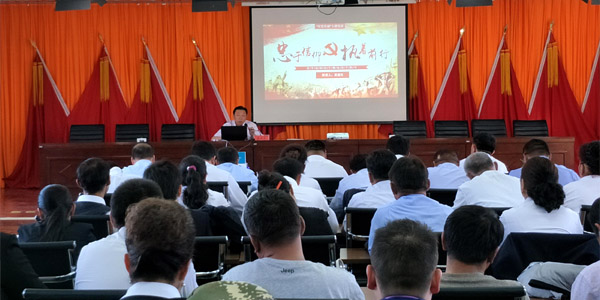 图为:裴建忠同志为参会的党员干部加油鼓劲