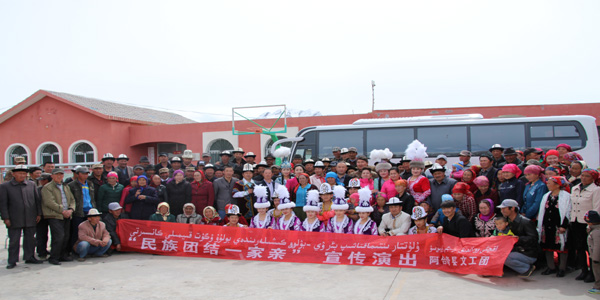 4月6日,自治区“访惠聚”驻苏木塔什乡克孜勒宫拜孜村工作队克州妇幼保健计划生育服务中心邀请县文工团来到该村,为村民送来了一场丰富的、以“民族团结一家亲”为主题的文艺演出。